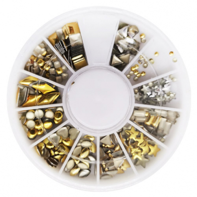 Nail Art Wheel Rhinestone Shapes Gold & Silver