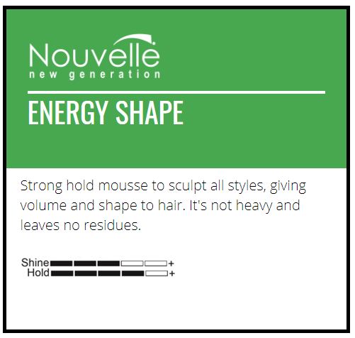 Strong hold mousse to sculpt all styles, giving volume and shape to hair. It's not heavy and leaves no residues.