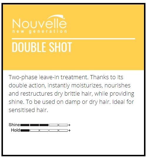Two-phase leave-in treatment. Thanks to its double action, instantly moisturizes, nourishes and restructures dry brittle hair, while providing shine. To be used on damp or dry hair. Ideal for sensitised hair.