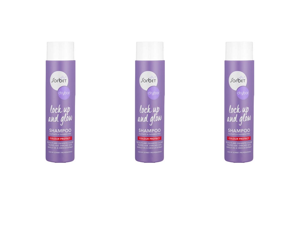 Sorbet Drybar Lock Up And Glow Conditioner 350 ml is a colour protect sulphate and paraben-free conditioner with hydrating marula oil and hibiscus extract that gently coats the hair shafts of all colour-treated hair, to soften and detangle whilst reviving and restoring vibrancy and shine. This pH-balanced formula protects colour for a long-lasting, silky feel, while marula oil helps moisturise and soothe dry scalps. It also contains anti-oxidants vitamin A, C, E and D-panthenol and amino acids, to nourish and condition hair.