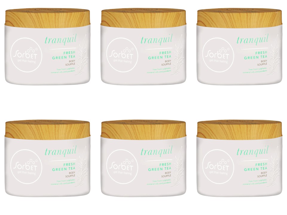 Sorbet Tranquil Fresh Green Tea Body Souffle 250ml is infused with skin-loving green tea, easily soaking into skin to soothe and nourish it. Contains no sulphates, parabens, petrolatum, and mineral oil.