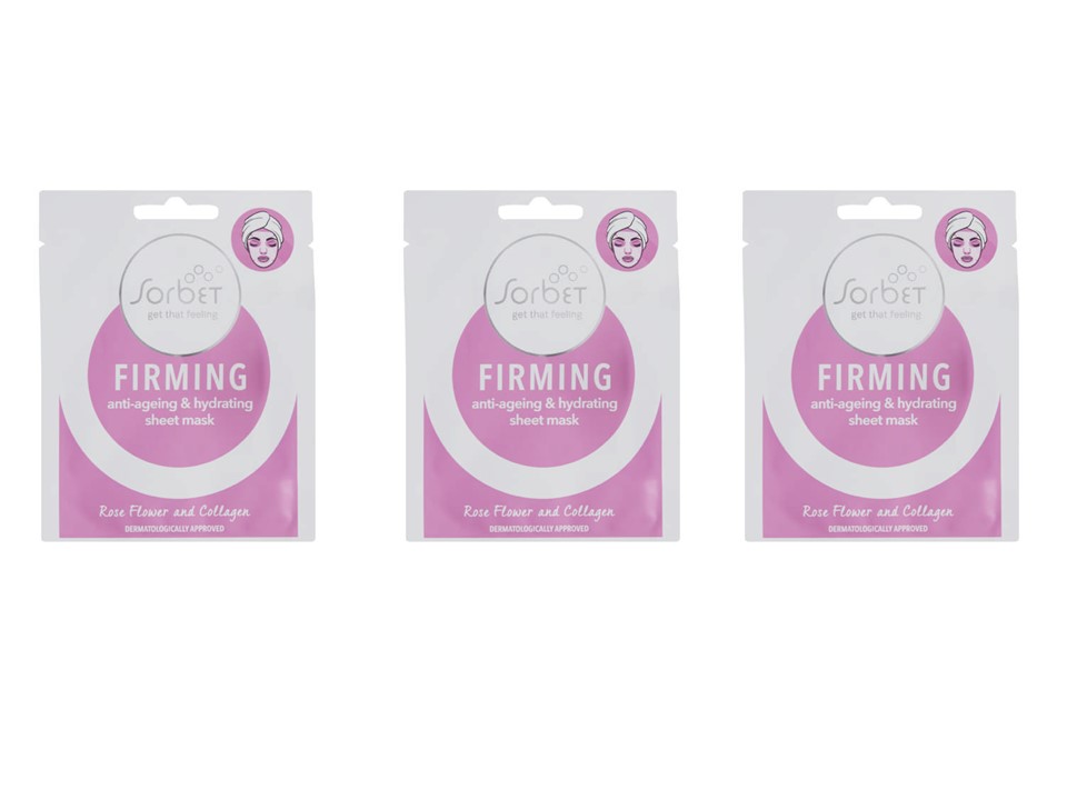 Sorbet Rose Flower & Collagen Firming Anti-Ageing & Hydrating Sheet Mask 23ml replenishes lost moisture with soothing, hydrating rose, while also restoring lost volume with added collagen.