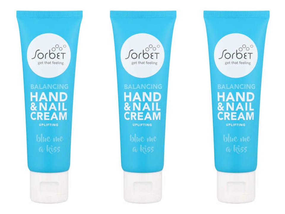 Sorbet Balancing Hand & Nail Cream Blue 75ml contains rosemary, starflower, pearl extract and Vitamin E to revitalise and uplift your skin.
