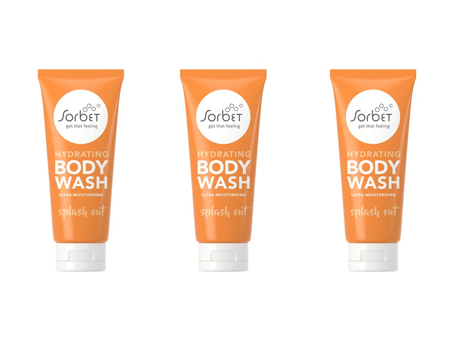 Sorbet Splash Out Hydrating Body Wash 200 ml remedies parched skin, with its ultra-moisturising formula, which contains shea butter and calendula oil.