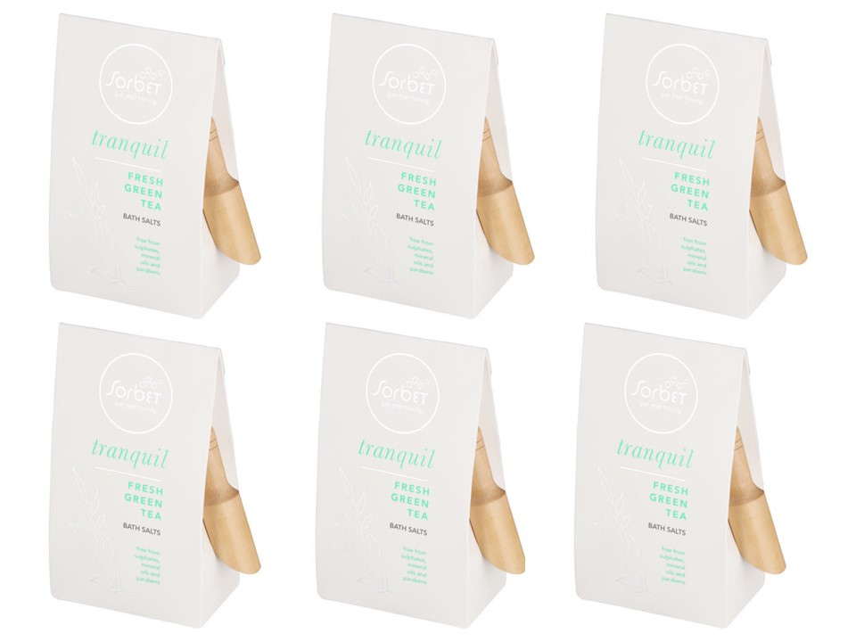 Sorbet Tranquil Bath Salts Ruby Grapefruit are formulated with ruby grapefruit to help clarify your skin, balance your mood and leave you feeling tranquil. They are 100% vegan and contain no sulphates, parabens, mineral oils or petrolatum.