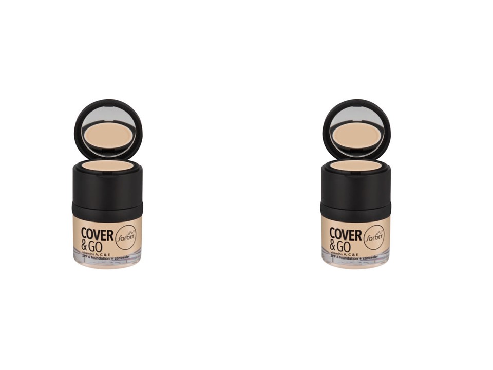 Sorbet Cover & Go SPF6 Foundation & Concealer Stone is a moisturising and flexible high coverage foundation with a matching full coverage concealer in the lid. SPF 6 for everyday protection and antioxidant vitamins A, E and C. Fragranced with natural essential oils.