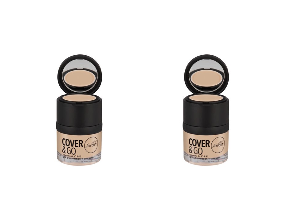 Sorbet Cover & Go SPF6 Foundation & Concealer Wheat is a moisturising and flexible high coverage foundation with a matching full coverage concealer in the lid. SPF 6 for everyday protection and antioxidant vitamins A, E and C. Fragranced with natural essential oils.