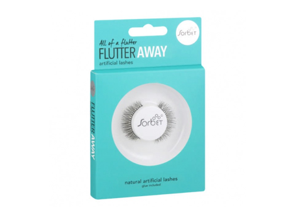 Sorbet Flutter Away Natural Artificial Lashes comes complete with all the tools you need to set your new wispy lashes in place. They dramatically open eyes for an entirely new look.