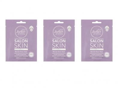 Sorbet Salon Skin Blemish Sheet Mask evens skin tone and soothes inflammation that causes redness with a combination of salicylic acid and chamomile. Clears your complexion and leaves skin radiant.