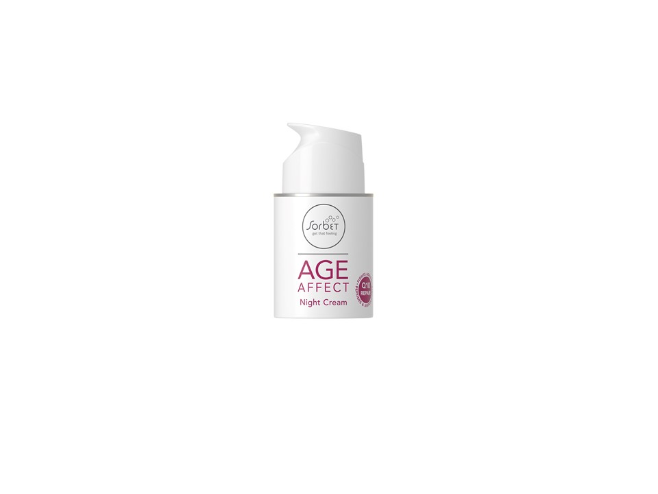 Sorbet Age Affect night Cream 50ml contains a scientific combination of powerful actives and age-fighting vitamins (A, C & E) to help combat the signs of ageing and restore your skin to a healthy and youthful appearance.
